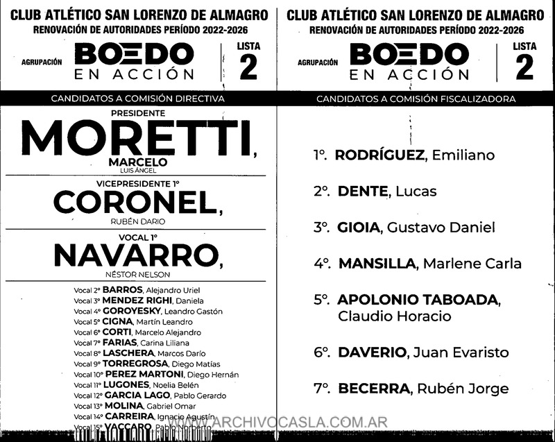 - Correspondencia enviada por la agrupación Boedo en Acción a los socios