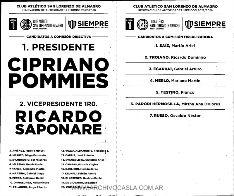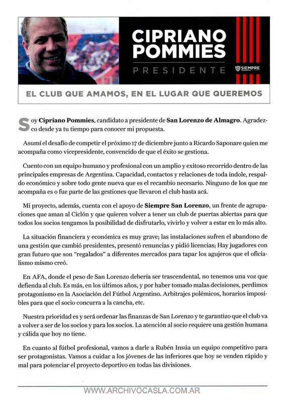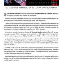 - Correspondencia enviada por la agrupación Siempre San Lorenzo a los socios