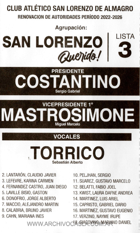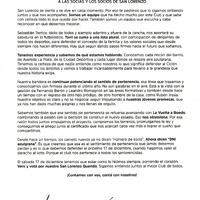 - Correspondencia enviada por la agrupación San Lorenzo Querido a los socios