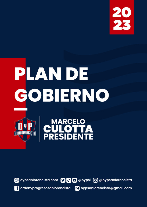 Documento programático de la agrupación Orden y Progreso Sanlorencista presentado en el marco de las elecciones 2023, con propuestas de gestión y candidatura de Marcelo Culotta a la presidencia.