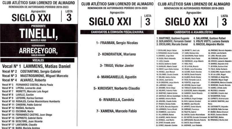 Boleta electoral 2019 - San Lorenzo Siglo XXI