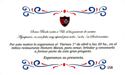 [Invitación presentación Soñar Boedo] Entrada e invitación para la presentación oficial de la agrupación Soñar Boedo, celebrada el 01 de abril de 2022 -