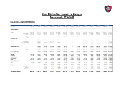 San Lorenzo de Almagro : presupuesto 2016-2017 Presupuesto institucional correspondiente al ejercicio 2016–2017 del Club Atlético San Lorenzo de Almagro, elaborado para la planificación financiera del período. -
