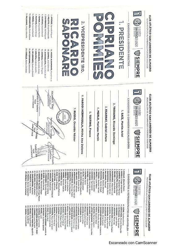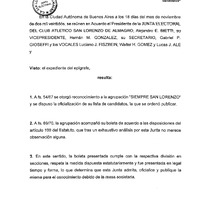 Aprobación de la boleta electoral presentada por la agrupación Siempre San Lorenzo así como también la asignación de número de lista.