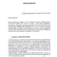 Carta invitación a convocatoria pública para cotización de compra - venta de estructuras, instalaciones, y elementos valorizables de la nave principal del club.