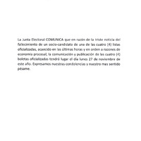 - Comunicado en relación al fallecimiento de un socio-candidato en el proceso eleccionario del 2023