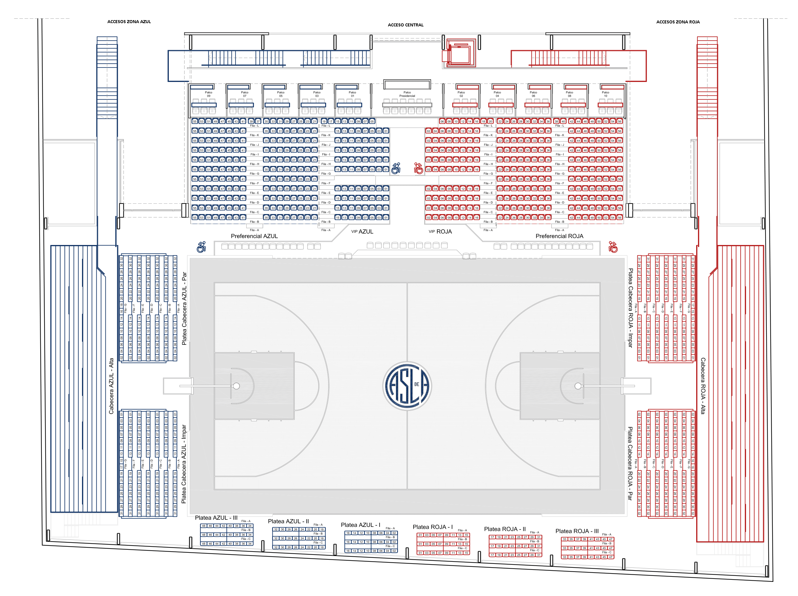 Plano de ubicaciones del Polideportivo Arquitecto Roberto Pando, utilizado en la interfaz de la sede virtual denominada Mi CASLA, para adquisición de entradas a distintos eventos deportivos.