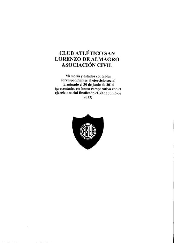 Club Atlético San Lorenzo de Almagro : Memorias y estados contables correspondientes al ejercicio social terminado el 30 de junio de 2014 (presentados en forma comparativa con el ejercicio social terminado el 30 de junio del 2013)