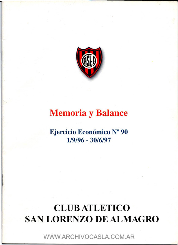 Memoria y balance : ejercicio económico Nº 90 1/9/96 - 30/6/97 : Club Atlético San Lorenzo de Almagro
