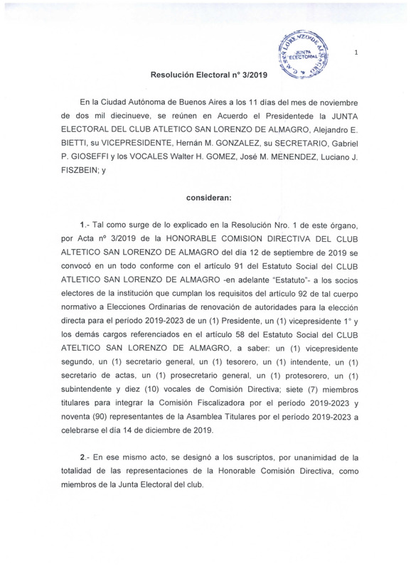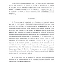 Documento en el cual la junta electoral resuelve que las elecciones se desarrollarían en avenida La Plata.