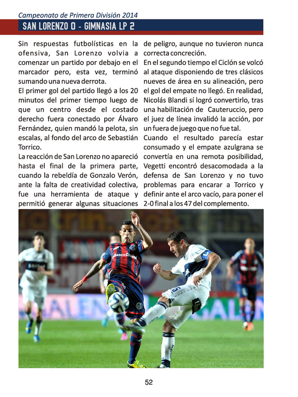 San Lorenzo 0 - Gimnasia (LP) 2 : Campeonato de Primera División 2014, p. 52