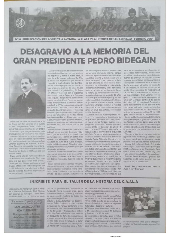 El Sanlorencista : publicación de la vuelta a avenida La Plata y la historia de San Lorenzo N° 53
