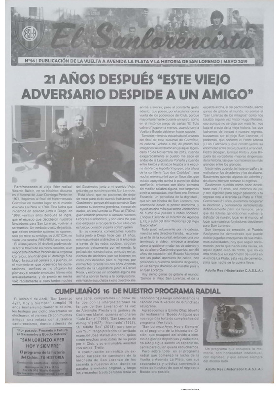 El Sanlorencista : publicación de la vuelta a avenida La Plata y la historia de San Lorenzo N° 56
