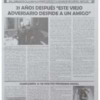 21 años después “este viejo adversario despide a un amigo” por Adolfo Res, p. 1