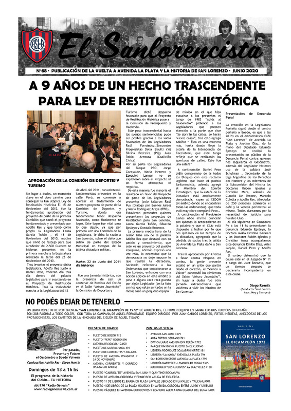 El Sanlorencista : publicación de la vuelta a avenida La Plata y la historia de San Lorenzo N° 68