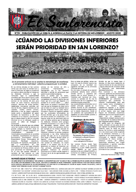 ¿Cuándo las divisiones inferiores serán prioridad en San Lorenzo? por Diego Resnik, p. 1